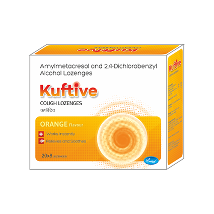DESCRIPTION: | Kuftive lozenges provides fast acting relief that helps prevent sore throat pain from getting worse as it contains two effective antiseptics. Kuftive is proven to work for up to 2 hours & is indicated for sore throat to prevent pain, discomfort & infection. |