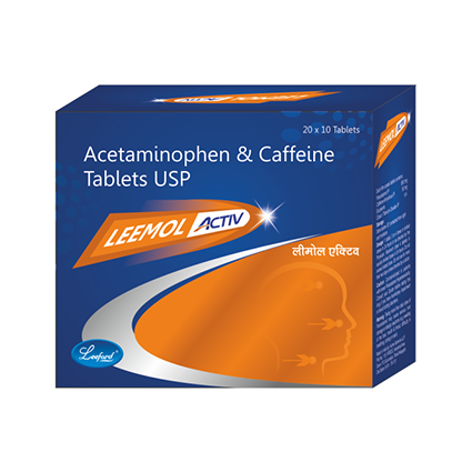 Leemol Activ tablets contain Paracetamol an analgesic and anti-pyretic and Caffeine a stimulant and analgesic. It is indicated in mild to modertate pain, headache, migraine, toothache, painful periods, fever, backache and rheumatic pain. |