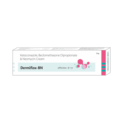| DESCRIPTION: | Dermiflox-BN cream contains Ketoconazole, to relieve fungal infections; Beclomethasone, to relieve relives itching, irritation, redness & swelling & Neomycin, to relieve bacterial infections. It is prescribed for the topical treatment of bacterial & fungal skin infections with associated inflammation. |
