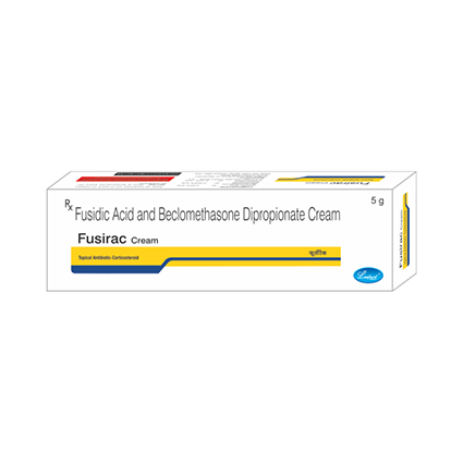 DESCRIPTION: | Fusirac cream contains Fusidic acid, an antibiotic that acts by killing bacteria to correct infection & Beclomethasone, a corticosteroid that reduces redness, swelling & itching to further enhance the relief. It is prescribed in cases of certain specific skin infections caused by typical bacteria such as impetigo, folliculitis, eczema & seborrehic dermatitis etc. |