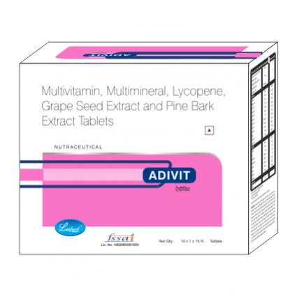 DESCRIPTION: | Adivit Tablet contains Pine Bark extracts, Lycopene & Grape Seed Extract with essential vitamins and minerals for antioxidant support, general health and wellbeing as well as maintenance of good health. Adivit Tablet is indicated for pregnancy and in the post-natal period for both lactating and non-lactating mothers, cardiovascular disorders, diabetes and chronic diseases. |