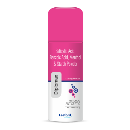 DESCRIPTION: | Diplomax Dusting Powder is an antiseptic, antifungal & keratolytic powder used in cases of skin irritation and inflammation (such as prickly heat), insect bites, fungal infections & eczema. It should not be applied on exudative lesions. |