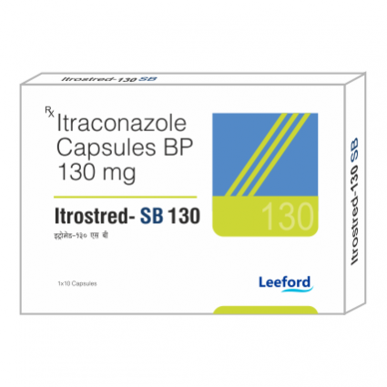 DESCRIPTION: | Itrostred-SB 130 contains Itraconazole 130 mg which is formulated by a special technique that ensures higher bio availability with 130 mg capsule. Itraconazole is an azole anti-fungal used for fungal infection of skin, internal organ & nail. |