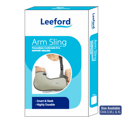 DESCRIPTION: | Leeford Arm Sling provides perfect immobilization and support to fractured arm. Its smart, sleek and open design provides improved ventilation and enhanced comfort. It comes with Shoulder pad and high cushioning further enhancing user comfort. Its adjustable sling helps in optimal positioning of arm. It is easy to use, washable, light weight, soft feel and durable. Its shoulder pad and thumb cradle, improve patient comfort and reduce fatigue. SIZES AVAILABLE: CHILD,S,M,L & XL |