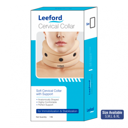 Leeford Cervical Collar is made up of high density foam with cotton stockinet which provides effective immobilization, support, cushioning and comfort of the user. Its thick round edges provides better immobilization, does not bites the skin or foam thus improving comfort of user and life of product. Long hook loop tape ensures perfect fitting and easy application. Rust proof eyelets further improves ventilation and comfort of user. It is Hypoallergenic (No rash/allergy), skin colour matching, good aesthetics, Light in weight, durable and long functional life. SIZES AVAILABLE: S,M,L & XL |