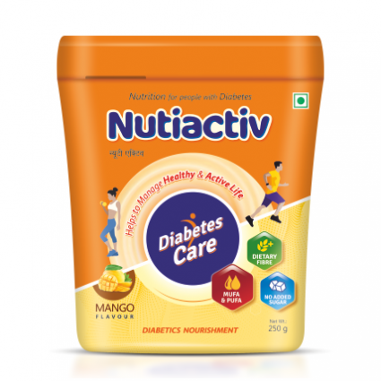 DESCRIPTION: | Nutiactiv Diabetes care nutritional powder is diabetes-specific nutrition for diabetic patients.It contains high Protein, high fibre, essential vitamins and minerals that support immunity, build strength and provide energy. Nutiactiv diabetes care is a perfect choice for those who are looking for a healthy and well-balanced lifestyle and weight management. It is available in delicious mango flavour. It is an ideal drink with zero added sugar that easily makes it place in your everyday diet plan. |