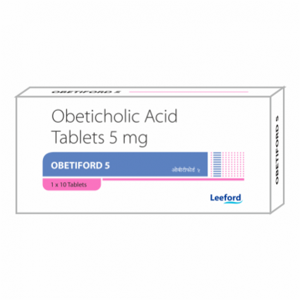 DESCRIPTION: | Obetiford-5 contains Obeticholic acid which is a farnesoid X receptor agonist. It is used alone or in combination with Ursodeoxycholic acid to treat primary biliary cholangitis (PBC; a type of liver disease that destroys bile ducts, which allows bile to stay in the liver and cause damage) in people who cannot take Ursodeoxycholic acid or in people who were not treated successfully with Ursodeoxycholic acid alone. It works by decreasing the production of bile in the liver and increasing the removal of bile from the liver. |