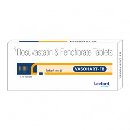 DESCRIPTION: | Vasohart-FB tablets contains Rosuvastatin & Fenofibrate, both lipid lowering drugs. It is prescribed to correct the imbalance of lipids (fats) in blood and to decrease the increased levels of cholesterol in blood swiftly. |