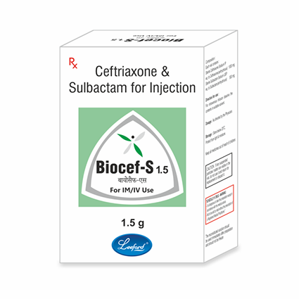 Biocef-S injection contains Ceftriaxone, a cephalosporin and Sulbactam, a beta lactamases inhibitor which acts synergistically to provide better results in difficult to treat infections. It is prescribed for respiratory tract infections, urinary tract infections, gynecological infections, intra-abdominal infections, for surgical prophylaxis, infections in blood as well bone and joint infections apart from others. |