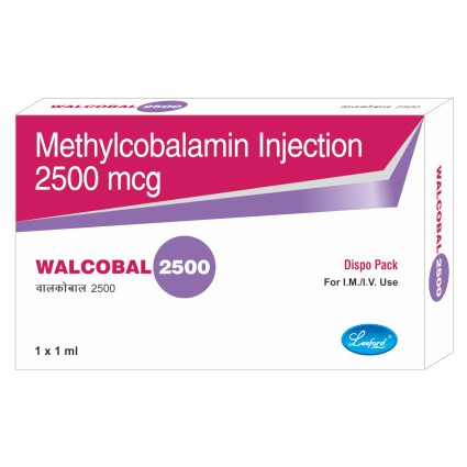 DESCRIPTION: | Walcobal 1500/2500 contains Methylcobalamin (bioactive form of Vitamin B12). Methylcobalamin is important for the brain and nerves, and for the production of red blood cells. It is indicated in Vitamin B12 deficiency, Pernicious anaemia, diabetic neuropathy, peripheral neuropathy, cardiovascular disorders, hyperhomocysteinemia, Alzheimer disease and degenerative disorders. |