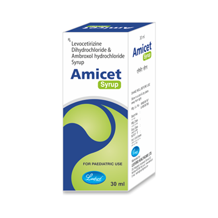 DESCRIPTION: | Amicet Syrup contains Levocetirizine (Anti-histaminic) and Ambroxol (Mucolytic). Amicet is indicated in Productive cough, bronchitis, Asthma, emphysema and other chronic inflammatory conditions. |