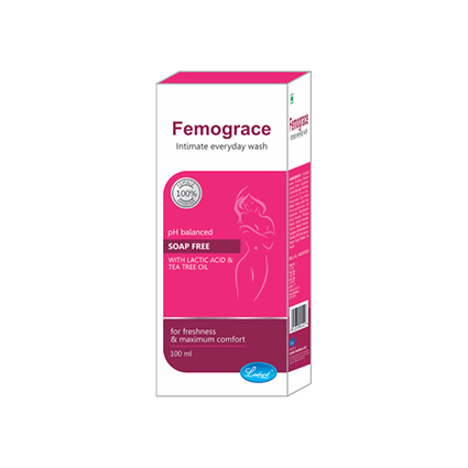 DESCRIPTION: | Femograce Intimate Wash is women’s intimate care & hygiene partner that not only takes care of the perineal wash but also maintains the complete ecology of vagina and associated area. Lactic acid in Femograce Intimate Wash maintains the natural pH balance of vagina i.e. 3.5 to 4.5 to maintain vaginal ecosystem & health. Femograce Intimate Wash contains Tea tree oil which acts as antibacterial & antifungal along with lactic acid; its organic cleansers mildy clean external intimate area & Eucalyptus oil soothes the skin, provides coolness & imparts soothing natural fragrance. |