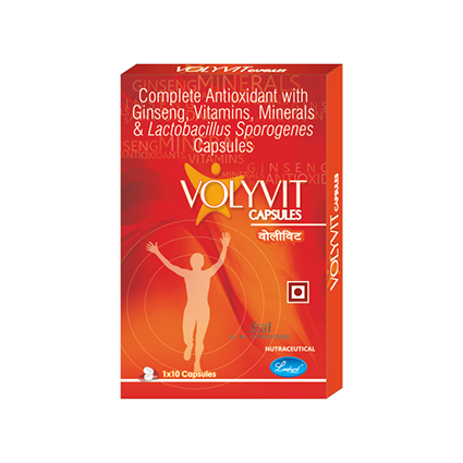 DESCRIPTION: | Volyvit capsule is a nutritional supplement which is combination of Ginseng, Vitamins, minerals and Bacillus coagulans. Volyvit Capsule fulfills the daily requirement of nutrients in order to provide a healthy and an energetic body. It is a rich blend of various essential vitamins and minerals that keep you charged throughout the day. It improves your digestion, improves your appetite and enhances the metabolism of your body to keep you fit. It provides superior immunity against common illnesses. |
