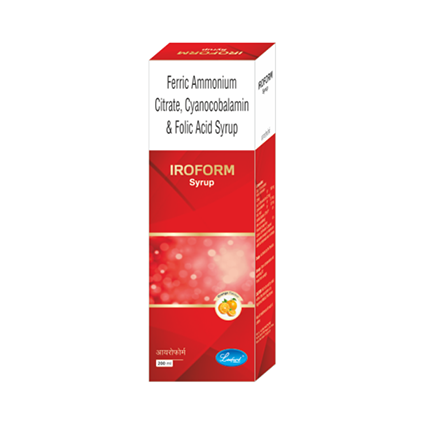 Iroform Syrup contains Ferric Ammonium Citrate in combination with folic, Vitamin B12 and Folic acid and Zinc. Iroform Syrup is indicated for iron deficiency anaemia, pregnancy and lactation and in major blood loss. |