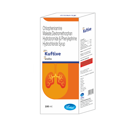 Kuftive syrup contains a combination of three medicines namely Chlorpheniramine (Anti-allergic), Dextromethorphan (Anti-tussive) and Phenylephrine (Decongestant). Kuftive is used to treat symptoms caused by common cold, flu, allergies, hay fever or other breathing illnesses (e.g. sinusitis and bronchitis), dry cough, throat irritation, sneezing, watery eyes, runny nose and stuffed nose. |