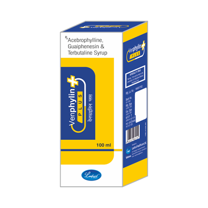 Venphyllin syrup contains Acebrophylline a bronchodilator, Terbutaline also an bronchodilator and Guaiphenesin an expectorant. It is indicated for cough associated with bronchitis, bronchial asthma, emphysema, Chronic obstructive pulmonary disease (COPD) and other bronchopulmonary disorders where bronchospasm, mucous plugging and problems of expectoration co-exist. |