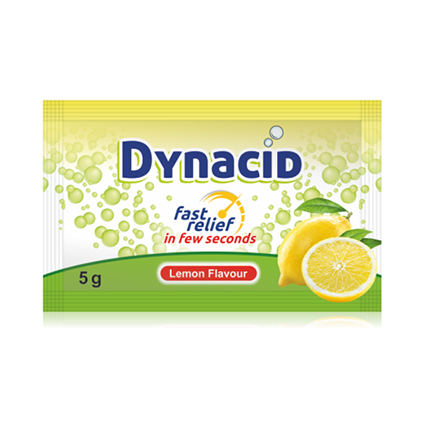 | DOSAGE/DIRECTIONS FOR USE: | Dissolve one 5 g sachet of Dynacid in 150 ml of cold water and drink, when symptoms occur. Repeat in 2-3 hours, if necessary. A second dose may be taken after 2-3 hours. Do not take more than 2 doses in 24 hours. Do not take this medicine for more than 14 days continuously. |
