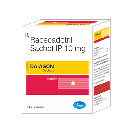 DESCRIPTION: | Daiagon Capsules/Sachets contain Racecadotril, a non-anti-infective anti-diarrheal that works by decreasing excretion of water and electrolytes in intestines to provide better relief compared to Loperamide.It is indicated for the treatment of acute diarrhea with other medicines. |