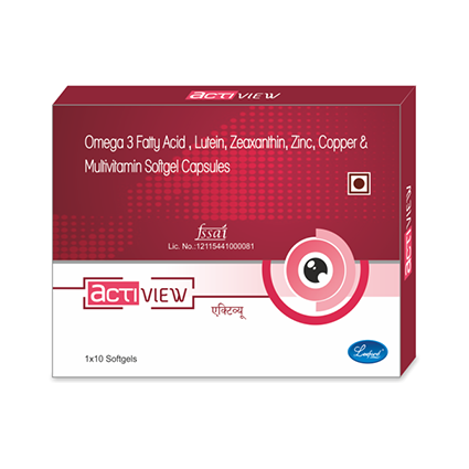 Actiview softgels contain Lycopene, Lutein and Zeaxanthin (Carotenoids), Omega 3 fatty acids with vitamins and minerals. Actiview Softgels are used to prevent Age related Macular Degeneration (AMD), many eye conditions like Cataract, Retinitis Pigmentosa, Dry eye and Glaucoma. It can also be used as general eye supplement. |