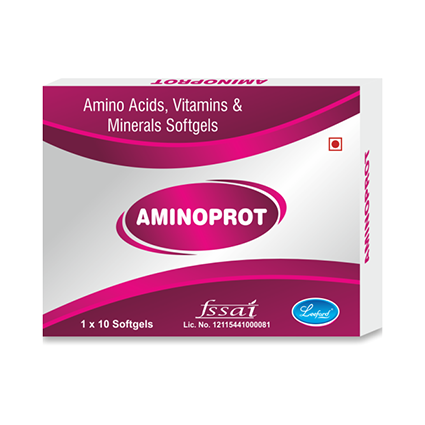 Amimoprot softgel is a blend of amino acids (building blocks of proteins) with Vitamins and minerals. Aminoprot is indicated in Intra uterine growth retardation (IUGR), convalescing patients, diabetes, post-surgical patients, cancer prevention, burns, trauma and prolonged illness. |
