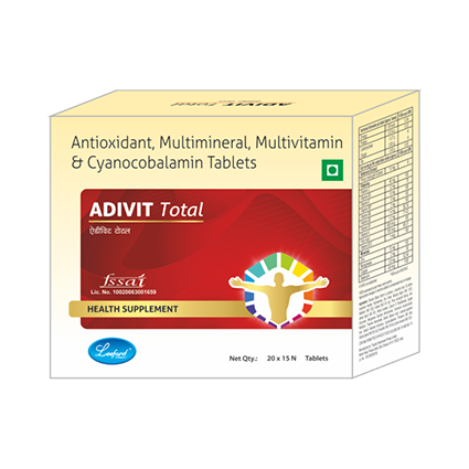 Adivit Total tablets contain Vitamins, Minerals and herbal extracts for better health and well-being. Adivit is a multivitamin and multimineral for daily use to compensate for various deficiencies. It boosts immunity , general well-being, support during additional requirements eg in injuries, ailments and post-surgical conditions. |