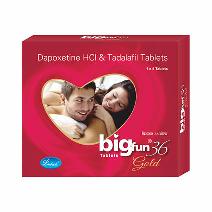 DESCRIPTION: | Bigfun 36 gold tablets contain Tadalafil a PDE inhibitor and Dapoxetine a SSRI and the combination is indicated for the treatment of erectile dysfunction and premature ejaculation in adult men. |