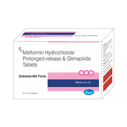 DESCRIPTION: | Debistal M2/M2 Forte contains Glimepiride 2 mg & Metformin sustain release 500 mg/1 g respectively. Glimepiride & Metformin both are anti-diabetic drug that acts synergistically to offer better diabetic control based on the requirement. It is prescribed for type II diabetes patients. |