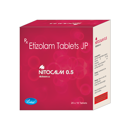 DESCRIPTION: | Nitocalm tablets contain Etizolam, an anxiolytic drug that acts by altering the brain chemical levels. It is prescribed for Anxiety disorder, Panic disorder & Insomnia etc. |