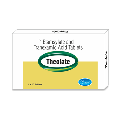 DESCRIPTION: | Theolate tablet contains Tranexamic acid & Etamsylate, both of which are antihaemorrhagic drugs that act by stopping bleeding. It is prescribed in case of surgeries, & other Gynaecological & medical conditions suspected to bleed or is bleeding. |