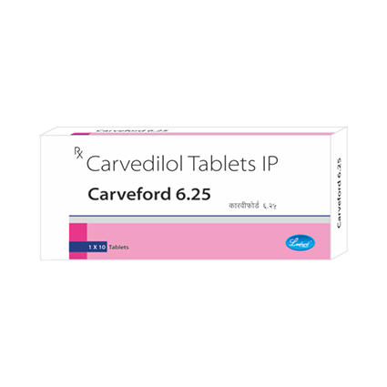 DESCRIPTION: | Carveford tablets contain Carvedilol, a non-selective beta blocker that acts by dilating the blood vessels to reduce blood pressure. It is prescribed in case of high blood pressure, heart pain (Angina) & chronic heart failure. |