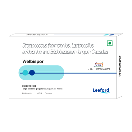 Welbispor contains Streptococcus thermophilus, Lactobacillus acidophilus, Bifidobacterium longum which belongs to the class of Probiotics. Probiotic microbes enter the large intestine & targets as well as metabolizes the uremic nitrogenous wastes as nutrients for its growth. It is also effective to maintain intestinal health after surgery and in chronic diseases.