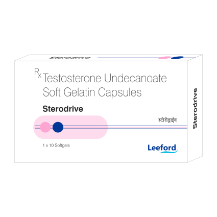 Sterodrive softgel contains Testosterone Undecanoate 40 mg. It mimics the activity of the natural Testosterone to deliver desired results. It should be used as Testosterone replacement in primary and secondary male hypogonadism (Reduced functional activity of the gonads). Testosterone is used to treat the symptoms of Male climacteric which is also known as Male menopause. Sterodrive is also used to treat the symptoms of impotence and delayed puberty in males.